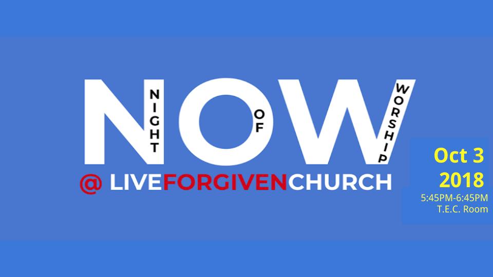 N.O.W. (Night Of Worship) John 4:23 But the hour is coming, and is now here, when the true worshipers will worship the Father in spirit and truth, for the Father is seeking such people to worship