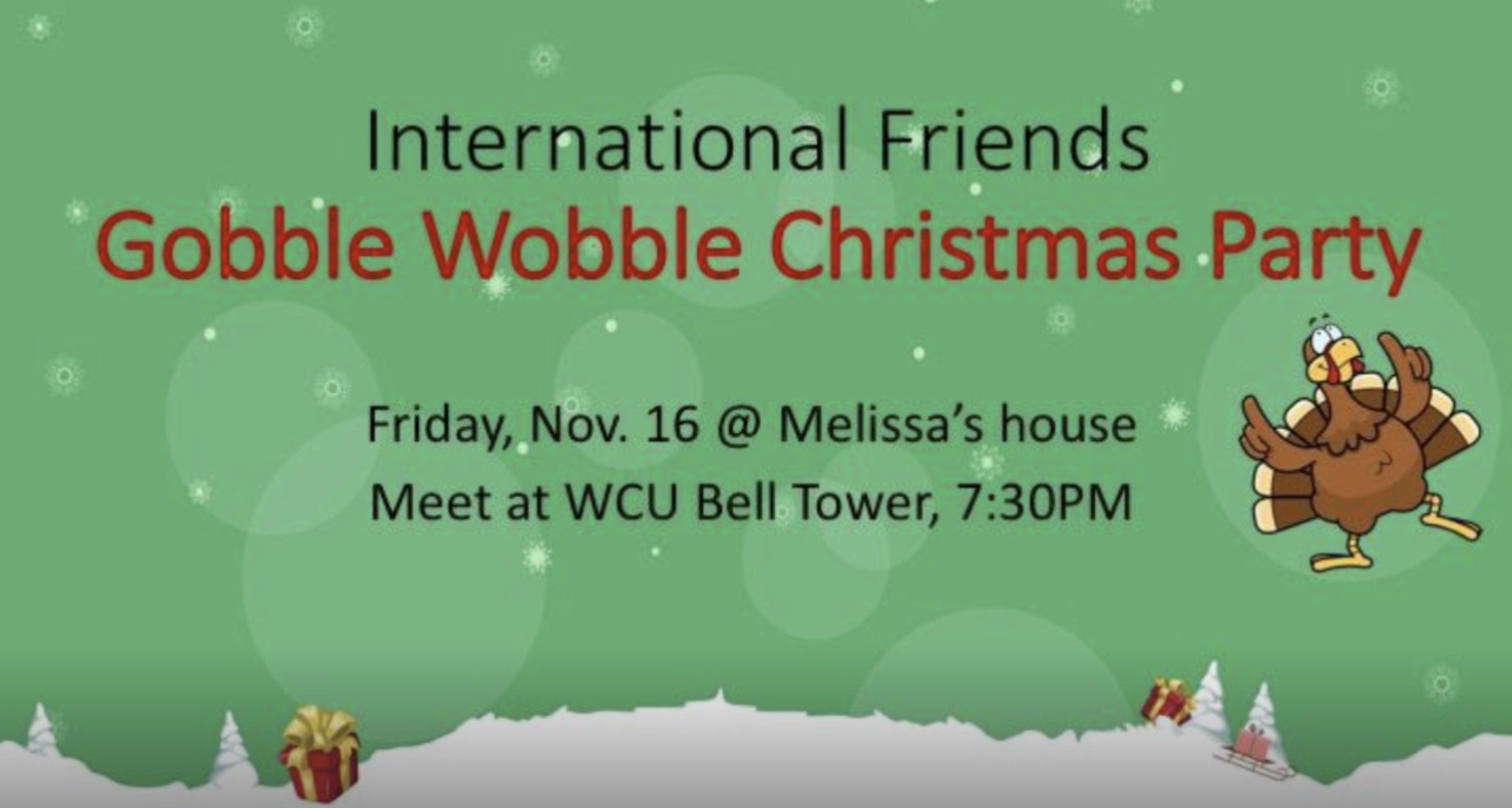 International Friends Gobble Wobble Christmas Party Meet @ WCU Bell Tower, 7:30pm