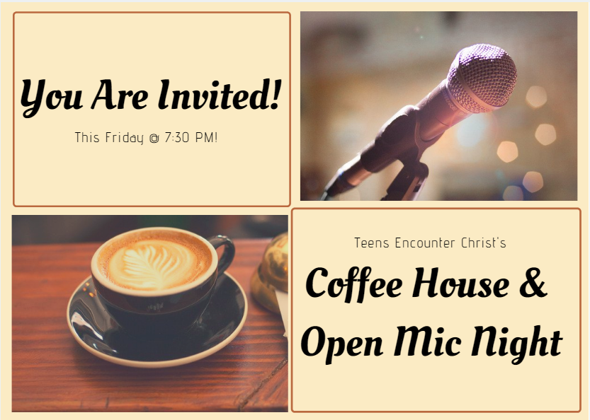 T.E.C. is hosting a Coffee House & Open Mic night this Friday starting at 7:30pm at LFC! Everyone is welcome!