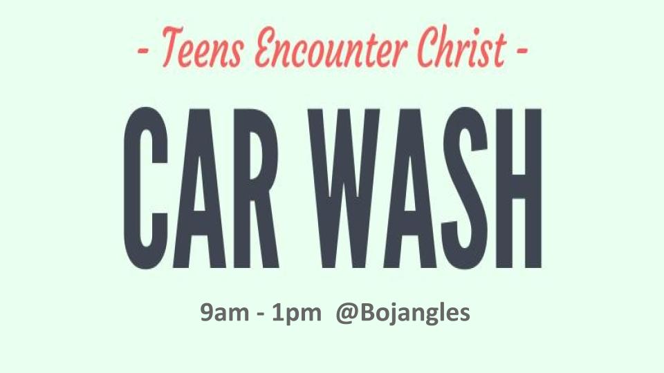 Teens Encounter Christ will be having a Carwash Fundraiser @ Bojangles in Sylva on Saturday, September 15 from 9am-1pm.